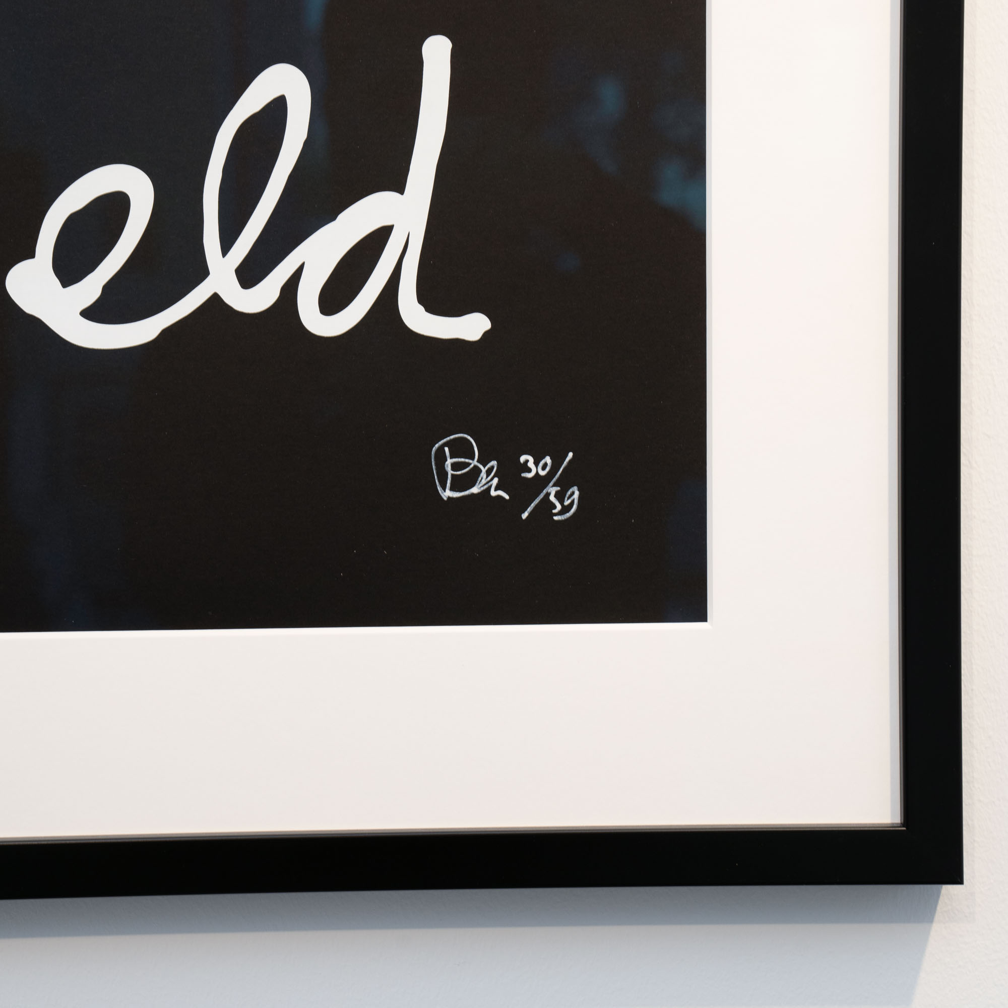 Die limitierte Serigrafie auf schwarzem Vélin-Papier (Exemplar Nr. 30/59) zeigt den charakteristischen Handschriftstil des französisch-schweizerischen Künstlers, der seit den 1960er-Jahren mit seiner „Écriture“-Kunst internationale Bekanntheit erlangte.