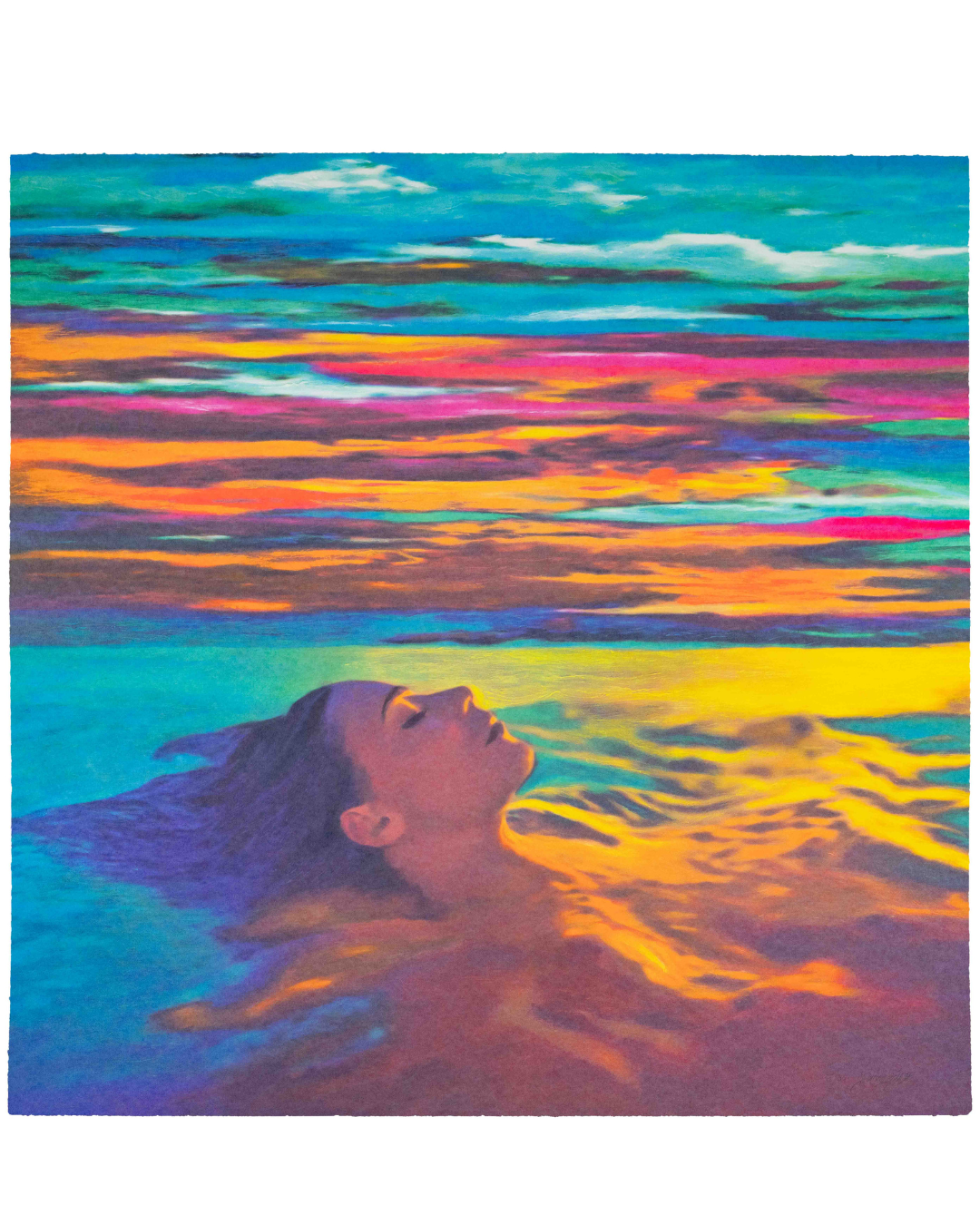 Colorful Horizon (2025) stammt aus der Serie Women in Water, in der James Francis Gill (geb. 1934) das Verhältnis von Licht, Farbe und Bewegung untersucht.